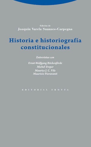 Tras unas reflexiones metodológicas previas, a cargo de Joaquín Varela Suanzes-Carpegna, el corazón de la obra lo componen las cuatro largas entrevistas que este historiador del constitucionalismo ha realizado a Ernst-Wolfgang Böckenförde, Michel Troper, Maurice Vile y Maurizio Fioravanti. En ellas se pone de relieve la pluralidad de saberes (jurídicos, históricos, filosóficos, sociológicos y politológicos) que concurren en la Historia Constitucional, a la par que permiten conocer de la mano de estos grandes maestros cuatro áreas muy relevantes de la historiografía constitucional mundial: la alemana, la francesa, la anglosajona y la italiana. El libro concluye con un estudio de Ignacio Fernández Sarasola sobre los orígenes, desarrollo y situación actual de la historiografía constitucional española.